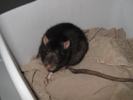 On February 7th while I was cleaning the rat cages, there was a foul smell, and Chuck was laying down in his box, when I examined him, there was a 'gash' or 'hole' in his testies. It looked aweful and painful, and the poor thing did not look comfortable. I did not expect Chuck to live in the next few days, but I did not want him to suffer, so I had him euthanized 2 days later on the 9th.